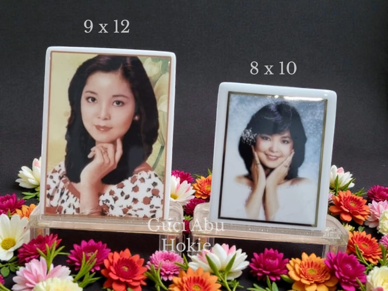 Foto nisan berdiri untuk kotak abu atau media porselen, dengan tampilan sederhana dan elegan.